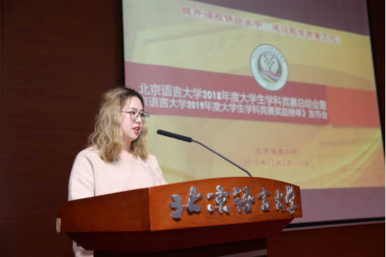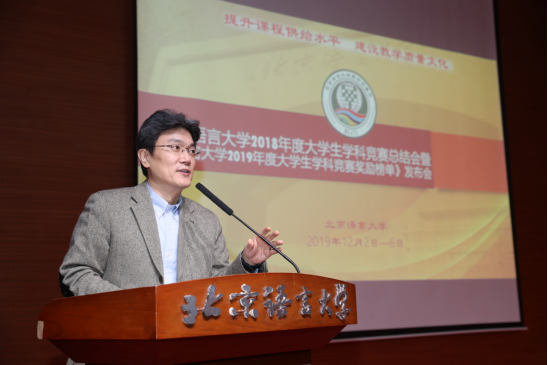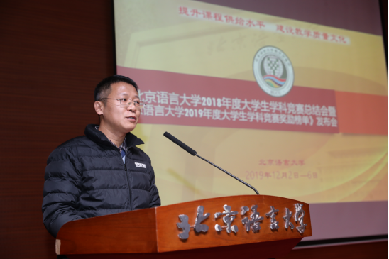 12月6日下午,作为教学质量周的闭幕式,北京语言大学2018年度大学生学科竞赛总结会暨《北京语言大学2019年度大学生学科竞赛奖励榜单》发布会在逸夫报告厅召开。张宝钧副校长出席会议,各教学负责人、相关职能部门负责人、师生代表等百余人参加会议。会议由教务处副处长陈亮主持。