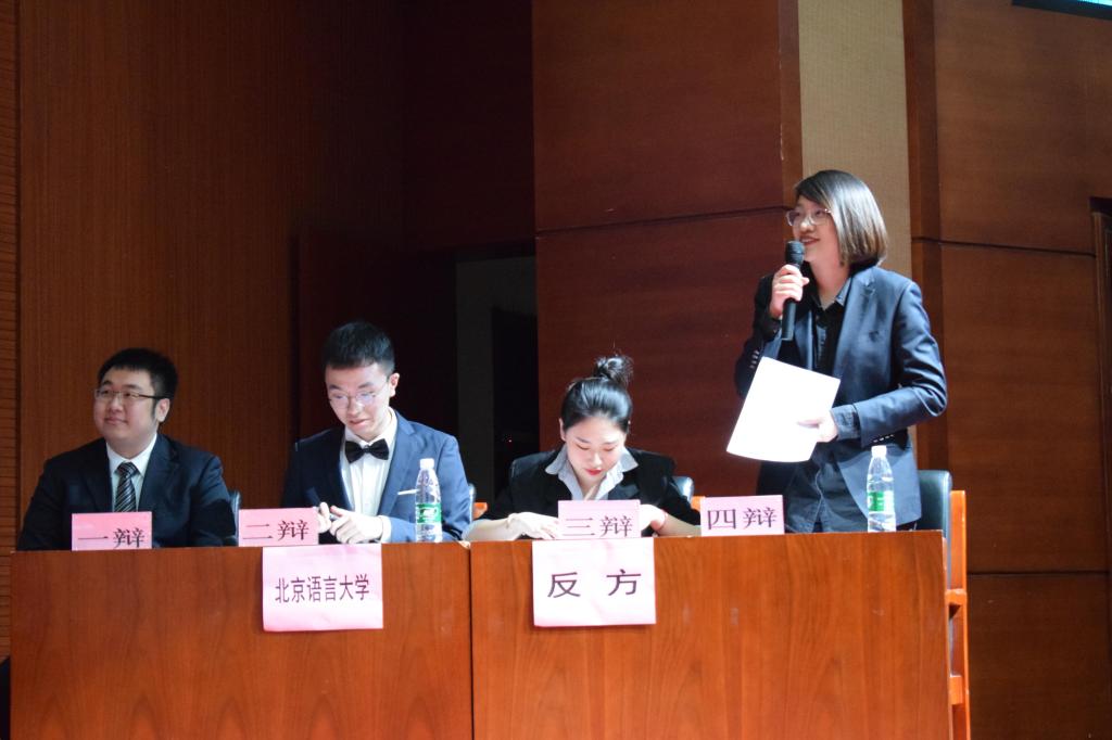 12月16日晚,北京语言大学第十届“思语杯”中文辩论赛决赛在逸夫报告厅圆满举行。我校教务处、外国语学部、校团委等单位负责人及学部辅导员代表作为本次决赛的嘉宾莅临比赛现场。本次大赛的评委有北京语言大学国际关系学院院长、联合国研究中心主任,教授、博士生导师贾烈英老师,北京工商大学艺术与传媒学院副院长、副教授、校辩论队讲师林刚老师,北京语言大学马克思主义学院杨林坡老师,中国科学院大学校辩论队教练王舒扬老师,中国地质大学校辩论队队长杨昊文。同时,中国地质大学辩论队与北京语言大学辩论队担任表演嘉宾进行辩论表演赛。