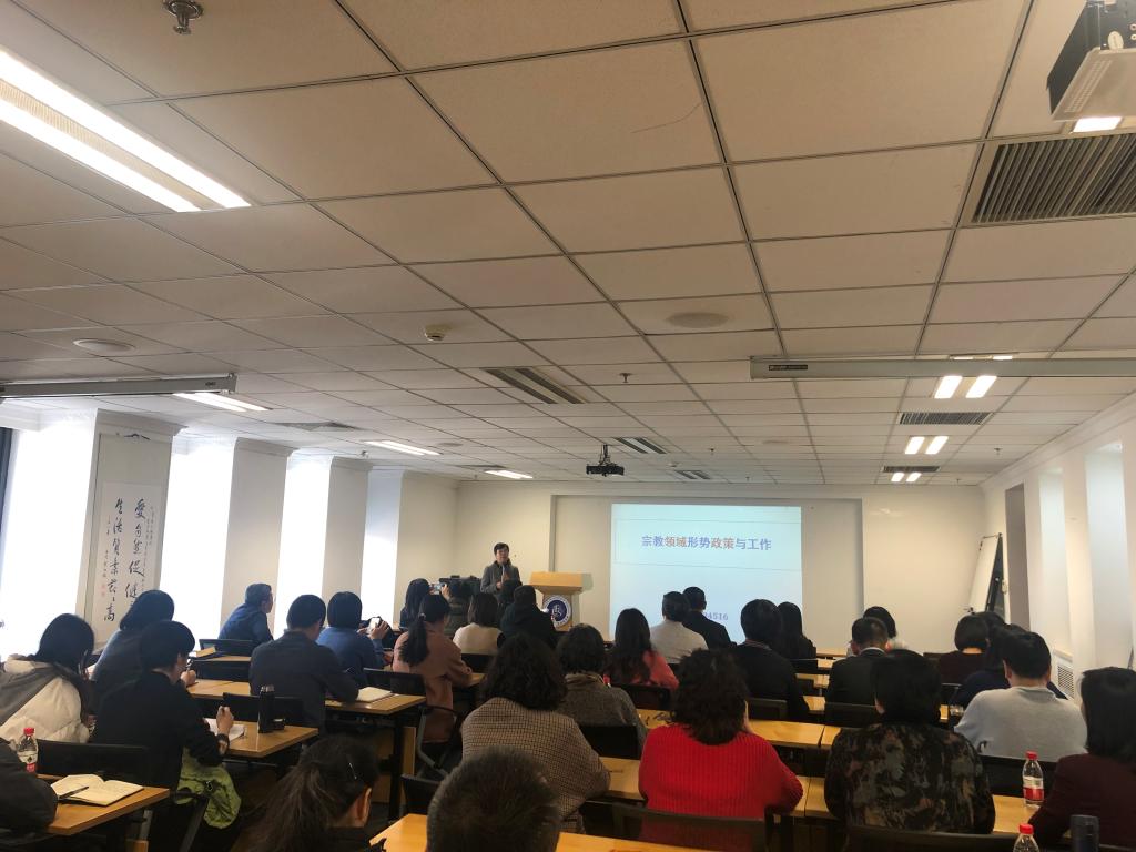 为深入学习党的十九大、十九届四中全会精神,进一步贯彻落实党的宗教工作基本方针,准确掌握宗教政策知识,提高开展相关工作的实效性,12月20日下午,我校在综合楼1211举办了民族宗教事务工作培训会,邀请中央社会主义学院马列教研部副主任沈桂萍教授做了主题为《新时代宗教领域形势政策与工作》的专题报告。学校民族宗教工作领导小组成员、二级单位统战委员、马克思主义学院教师、学生辅导员、班主任、学生骨干代表等聆听了报告。报告由校党委常委、统战部部长吕静同志主持。