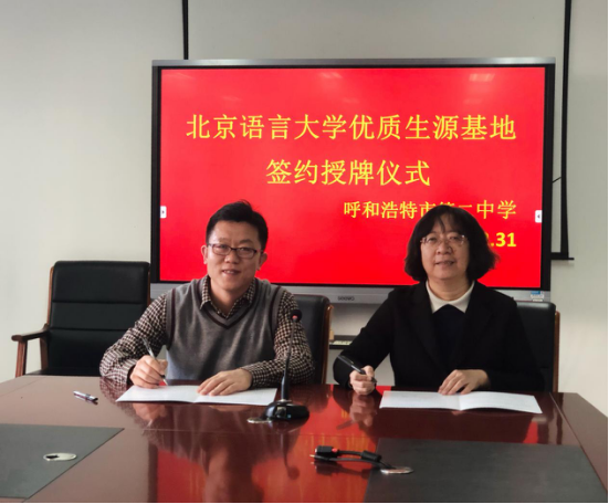 12月30日至31日,由学校办公室副主任张雯强带队的招生宣传工作小组前往内蒙古呼和浩特市开展本科招生宣传工作。宣传组先后深入内蒙古师范大学附属中学、呼和浩特市第一中学及呼和浩特市第二中学进行招生宣传,并举行北京语言大学“优质生源基地”签约与授牌仪式。