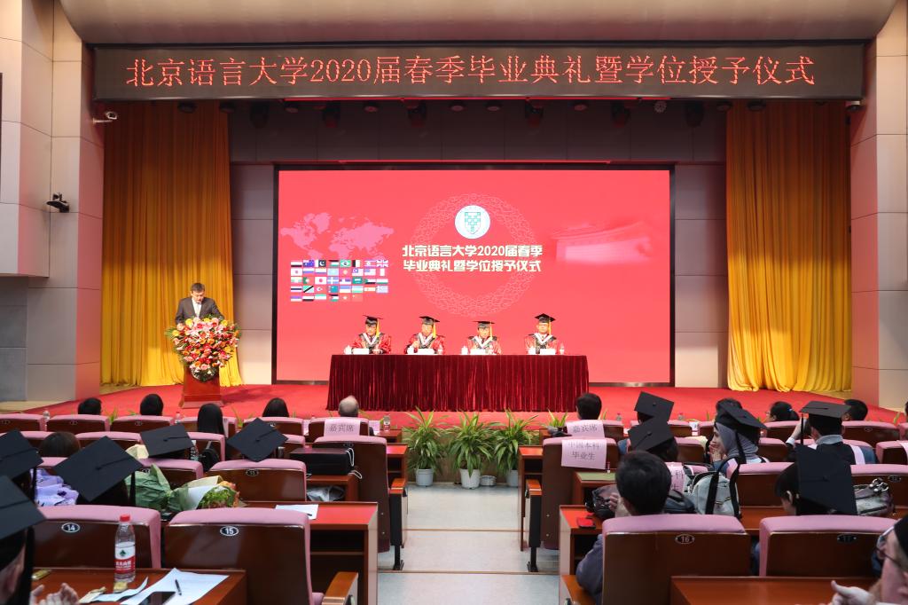 1月6日下午,北京语言大学2020届春季毕业典礼暨学位授予仪式在教一楼209隆重举行,来自37个国家和地区的203名毕业生身着学位服,怀着激动的心情迎接毕业的那一刻。