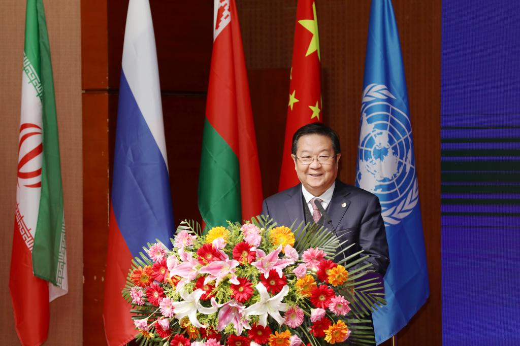 文化部原副部长、全国政协文化文史和学习委员会副主任丁伟在致辞中表示,北京语言大学一带一路研究院是在“一带一路”共商、共建、共享的原则下,开展学术研究和国际交流,通过平等、对话、了解,进一步加强中国与世界的沟通,努力为构建人类命运共同体做出积极的贡献。