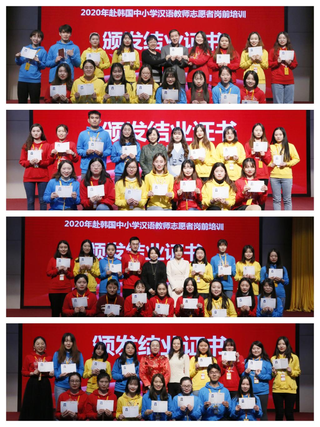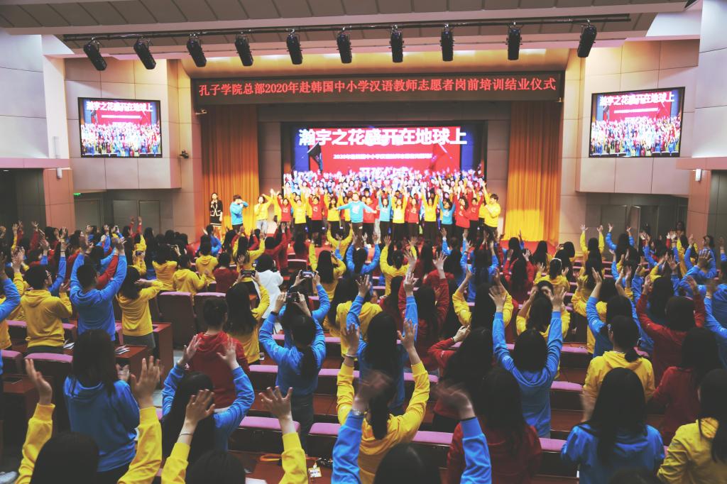 1月4日,孔子学院总部2020年赴韩国中小学汉语教师志愿者岗前培训结业仪式在我校顺利举行。孔子学院总部志愿者工作处韩国志愿者管理教师符恬、北京语言大学人文社会科学学部副主任/国际关系学院院长/联合国研究中心主任贾烈英、汉语国际教育学部副主任苏英霞、汉语进修学院副教授李小丽、汉语学院副教授张俊萍、汉语速成学院教师于璐、汉语进修学院教师刘逸云、孔子学院事业部/孔子学院教师培训中心主任助理戴媛媛及314名参培志愿者参加了结业仪式。