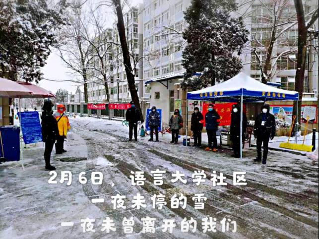 疫情当前,防控不歇。驻守在一线的工作人员值守扫雪两不误,楼门长、物业人员、离退休工作处和社区的工作人员也纷纷加入扫雪队伍,为雪中的家园更增添了一道文明的风景!