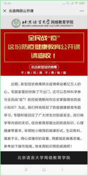 四是借助和善用社会优质疫情防控资源,为我校广大师生和社会大众提供防疫健康教育专题学习课程。