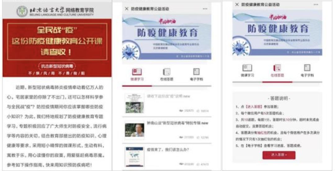 四是借助和善用社会优质疫情防控资源,为北语广大师生和社会大众提供防疫健康教育专题学习课程。