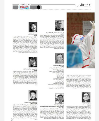 为展现中国作家群体在抗疫防疫过程中的真实感受,向国际社会传递中国作家真实立体的声音,北京语言大学一带一路研究院依托中国文化译研网(CCTSS,简称译研网)国家工程平台,沟通埃及青年汉学家、翻译家米拉·艾哈迈德(Mira Ahmed),以微信采访的方式,网络采访了24名中国知名作家和学者,并将他们在疫情期间的隔离生活以及他们所见中国抗疫举措的真实感受翻译成了阿拉伯语,于5月8日在埃及久负盛名的文学刊物《文学新闻报》上刊登,让中国作家群体发声,对消除因个别作品所带来的的负面国际影响发挥了非常积极地作用。