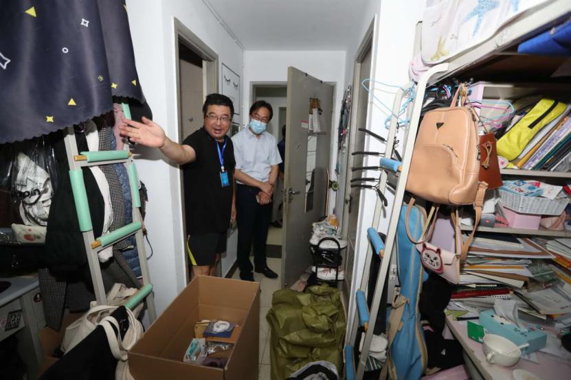 7月4日,信科院和财务处联合组成的专项工作组,两人一组为学生打包行李。学院中层干部及行政人员全员上岗,工作组的老师更是牺牲周日休息时间,早早来到学校。打包邮寄行李的老师们既有年过花甲的老教授,又有刚入职不久的新北语人。此时,大家不分老幼、团结一心,目标只有一个:把每一位毕业生的行李,安全送到指定地点。打包期间,学校党委常务、副校长黄益方慰问了部分正在给学生打包行李的老师,