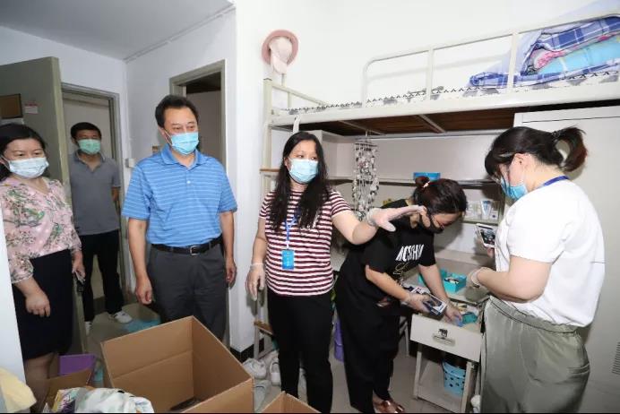 秉承用心服务、细致整理、分类放置、妥善邮寄的宗旨,确保毕业生所有行李安全到家,在行李打包前期,辅导员通过各种方式确认核对邮寄行李人数、邮寄物品清单及详细邮寄地址。在整理行李过程中,为了避免遗漏,老师们全程与学生视频连线,一手举着手机,一手挑选物品,在学生的“导航”下,一件件物品精准“定位”,老师们通过点对点、一对一的服务,确保了每一位同学的物品准确齐全。倪海东书记、刘利校长看望慰问参加毕业生打包邮寄行李工作的教工们,并与正在视频连线确认打包邮寄物品的毕业生亲切交流,表示学校和全体老师一定全力做好打包邮寄行李工作,请同学们放心,同时询问了学生疫情期间的生活情况和工作去向,勉励毕业生在困境中振奋精神,勇往直前。