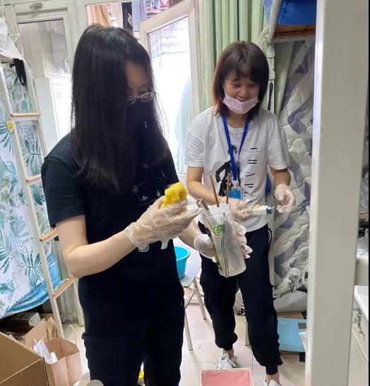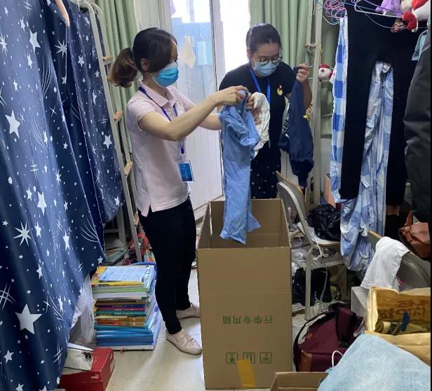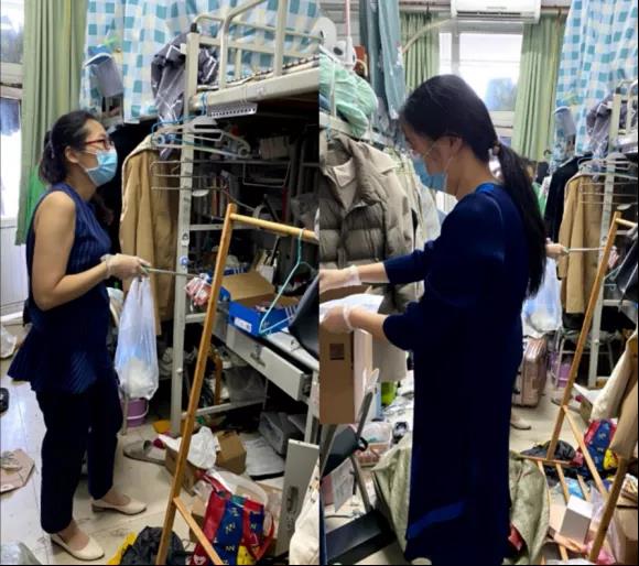 衣服、鞋子、护肤品、药品、画笔、乐器……学生们的一件件物品,老师们细心查找、精心整理、关切询问、往返搬运,额头的汗水,湿透的后背,让视频另一端的毕业生和家长们深受感动,看着平日里传道授业解惑的老师在为自己整理行装,上着特殊的大学最后一课,大家的感激之情溢于言表。