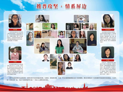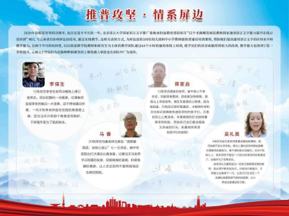 今年5月基地承担教育部语用司“52个未摘帽贫困县教师国家通用语言文字能力提升在线示范培训”项目,与云南省自治州屏边县结对,通过在线教学、远程互动的方式为屏边县的100位幼儿园和中小学教师提供60个小时的普通话培训课程。学员们的语音面貌明显改善,教学能力进一步提升。云端之下学员与教员为克服种种困难坚持上课的感人事迹在团队中广为流传。