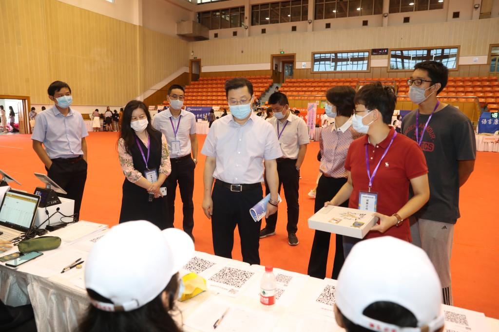 上午,校党委书记倪海东、校长刘利、副校长张宝钧、副校长黄益方等校领导来到迎新现场,热情慰问了现场的工作人员和志愿者们,对各部门前期的努力付出表示感谢,对各个学部院系周密的准备、精细的安排表示肯定。校领导们在现场体验了今年首次安装的人脸识别系统,查看了新生报到进展情况统计系统,对迎新的各项信息化举措给予赞许。同时,校领导与报到的新生们进行了亲切交流,对他们的到来表示热烈欢迎。现场的新生们虽都带着口罩,但遮不住喜悦兴奋的表情。