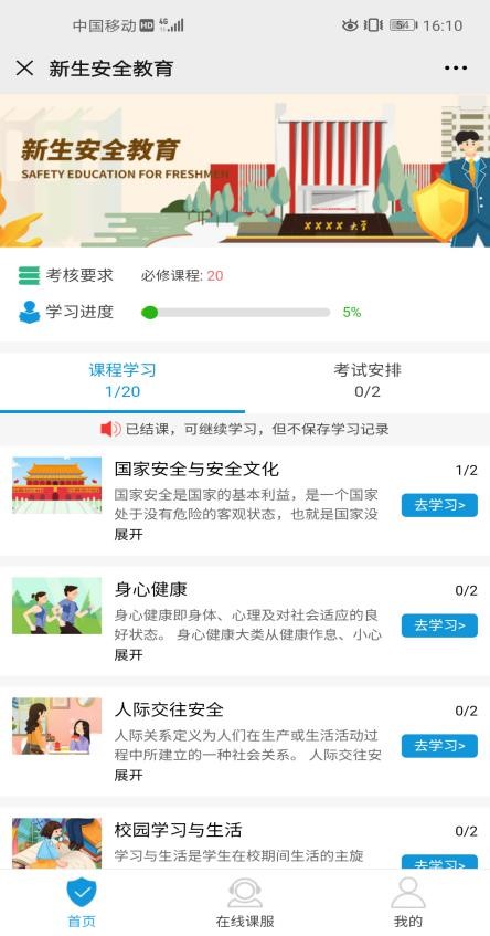 随着2020级新生录取工作正式开始,新生入学安全教育网络课程正式上线。根据学校在2019年关于开展本科学生安全教育工作的新要求,学工部与专业安全教育网络课程机构合作,通过北语学生处公众号“北语学工”手机端链接,发布100余门在线安全教育课程,覆盖国家安全、防诈骗、防侵害等人身财产安全、消防安全、交通安全、健康防疫知识、反邪教等十余个门类的安全教育课程。课程多以视频、动画、文字等生动活泼多样的新媒体形式呈现,可以实现新生入学前随时随地自主学习。此外,结合课程学习和评估信息大数据还可加强教育管理,提升教学效果。截至9月20日,2020级本科新生参加安全教育课程完成率达97%,考试通过率达99%,新生安全教育基本全面覆盖,让2020级学生在入学之日起就树立起安全防范意识。