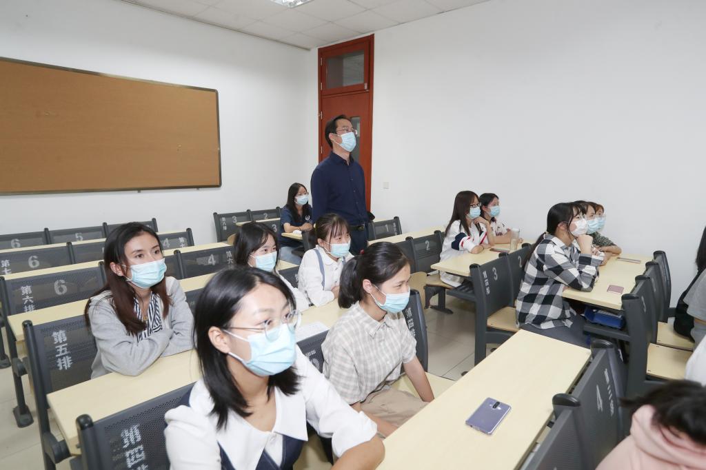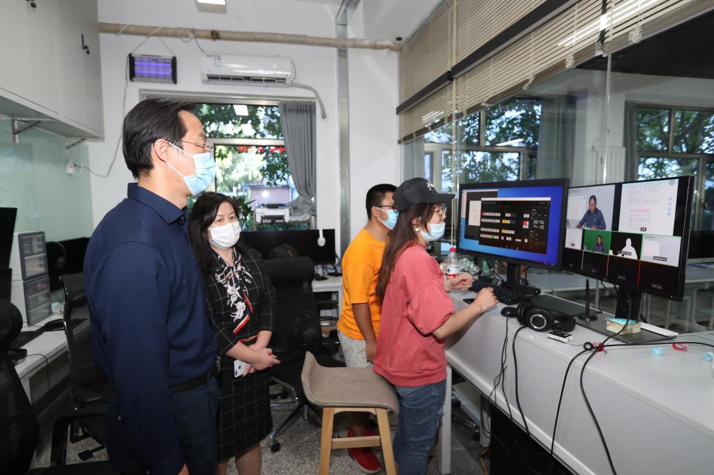 不同于往年在梧桐会堂举办新生入学教育系列专题讲座集体授课,今年新生入学教育系列讲座通过新闻传播学院新媒体工作室实时直播,各教学单位以班为单位在小教室通过播放直播视频进行集中学习的形式进行。这样既规避了大量人员聚集可能造成的健康防控风险,又能够通过小班集体学习提升效果。9月17、18日下午,来自7个本科学部院系50个专业班级的共计1176名本科新生,在全校5个教学楼的共60间教室进行入学教育集中小班学习。黄益方副校长、学工部黄展部长在新生教育活动期间走进直播工作室和各教学楼新生教室,考察了解新生入学教育课程直播工作和新生教育学习开展情况。