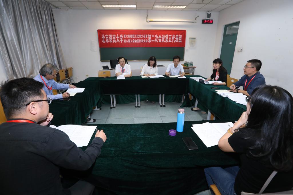 9月26日下午,北京语言大学第六届教职工代表大会暨第八届工会会员代表大会第二次会议分组讨论会在学校教一楼多个会议室同时召开。“双代会”正式代表分成十组进行小组讨论。校领导分别参与了所在小组的讨论,其中倪海东书记参加了第六组会议,刘利校长参加了第五组会议,会议分别由各组组长主持。