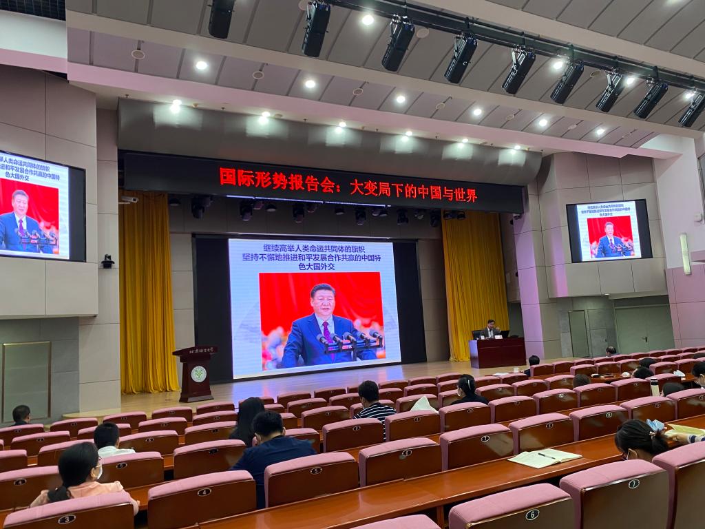 为认真学习贯彻习近平新时代中国特色社会主义思想,进一步认识世界百年未有之大变局,9月29日下午,北京语言大学在教一楼209举行了主题为“大变局下的中国与世界”国际形势报告会,原中联部副部长、当代世界研究中心主任于洪君教授为学校中层干部、各级党委组织书记、专职党务工作人员、青年教职工代表做了一场精彩的报告。党委书记倪海东出席报告会,报告会由党委副书记魏晖主持。