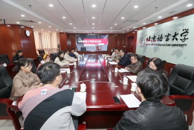 10月28日上午,北京语言大学学生社团建设座谈会召开。学校党委倪海东书记出席会议并讲话。学工部部长黄展、人事处副处长王旭、马克思主义学院院长丁文阁、校团委书记杨天乔、校团委副书记张晴,社团指导教师代表高秀平老师、朱凌泽老师以及六位学生社团负责人代表参会并发言。会议由学校党委常委、黄益方副校长主持。