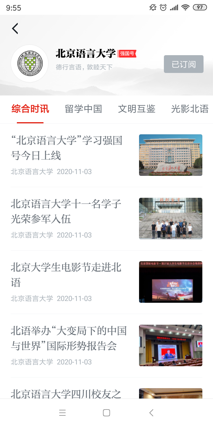 请在学习强国APP搜索北京语言大学强国号,点击订阅即可。期待您的订阅、分享和点赞!