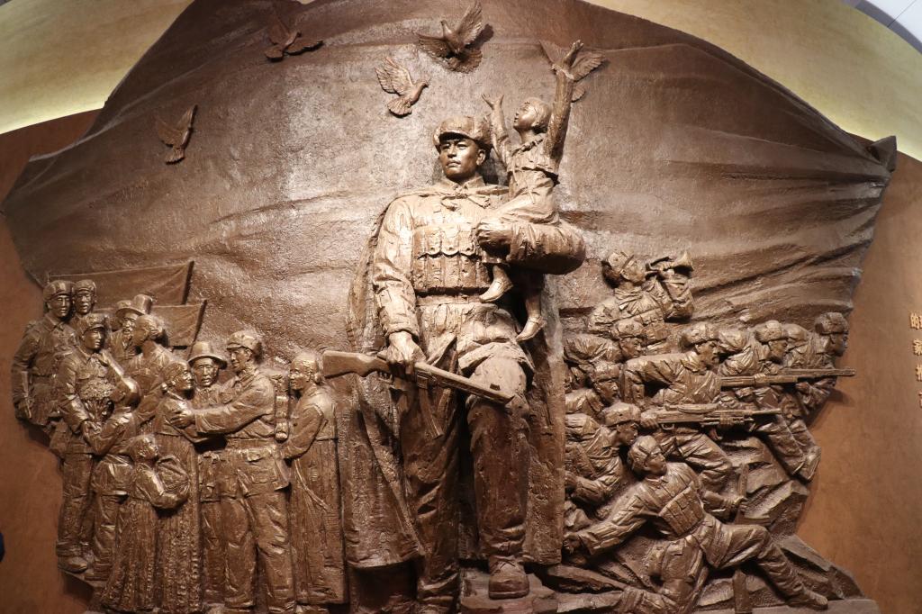 展览以爱国主义为核心,以宣传中国共产党伟大革命精神为主题,通过图片、实物、油画等多种途径向我们展示了一幅全景式抗战过程。70年前,21岁的黄继光用身体堵住了敌人的枪膛;26岁的邱少云为了不暴露连队,即便烈火焚身也纹丝未动;28岁的杨根思身抱炸药,拉动导火索,跟敌方同归于尽……这些伟大的英雄们,“雄赳赳,气昂昂,跨国鸭绿江”,他们的革命英雄主义,在历史长河中熠熠生辉,永不湮灭。