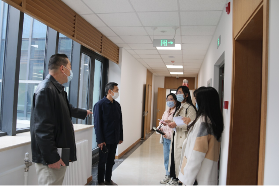 在验收过程中,大家仔细查看了馆内建筑装饰装修情况。基建处副处长杨学滨介绍了图书馆整体情况和建设细节,总结、分享项目建设过程中的经验和教训。回顾了项目建设中遇到各类工作难题时协同攻坚的过程。着重介绍了馆内新增的研讨室和讨论室,将为学生提供更加便利的讨论交流空间。图书馆方与基建处还对未来建筑空间使用及内部设备做了详细探讨与规划。