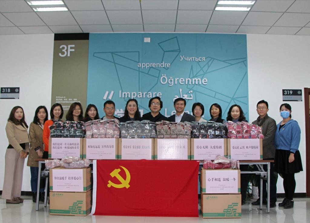 为践行中国共产党全心全意为人民服务的宗旨,弘扬中华民族互帮互助的美德,外国语学部行政教工党支部经与优秀校友、援疆干部常桢玉联系,自2019年以来开展了针对新疆库车县比西巴格乡中心小学的定点捐助活动。近日,机关党委学校办公室党支部和外国语学部党委行政教工党支部联合发出倡议,继续开展捐助活动帮扶该小学。本次活动,两个支部共计捐助1800元,为比西巴格乡中心小学的孩子们购置了近500副防寒手套。两个支部的党员共同将手套打包装箱,并把爱心祝福语贴在箱子上,“我们是同一片大海的浪朵,我们是同一座花园的芬芳”“心手相连 温暖一冬”“相知无远近 万里尚为邻”“融心 融爱 融未来”……党员同志们希望通过自己的手把温暖传递给那些家庭极端贫困的孩子们,让他们感受到党和人民的温暖,一心向党、爱党。