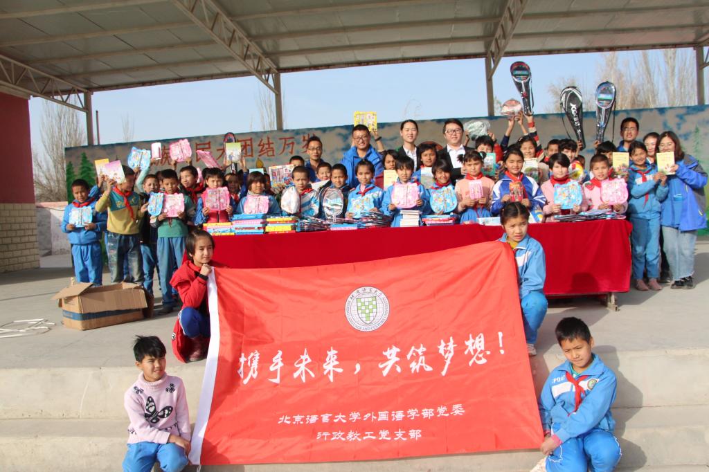近日,外国语学部行政教工党支部与共建支部机关党委学校办公室党支部联合开展爱心捐助活动,共同帮扶新疆库车县比西巴格乡中心小学学生。
