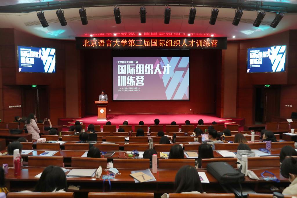 11月28日上午,由就业创业指导中心主办、学生职业发展协会承办的北京语言大学第三届“国际组织人才训练营”在逸夫报告厅开营。前国际劳工组织东亚分局副局长、中国联合国协会常务理事王纪元,资深健康促进公共卫生专家、独立顾问何景琳,北京语言大学副校长黄益方以及相关职能部门和培养单位负责人出席了开营仪式。开营仪式由就业创业指导中心主任刘喆主持。