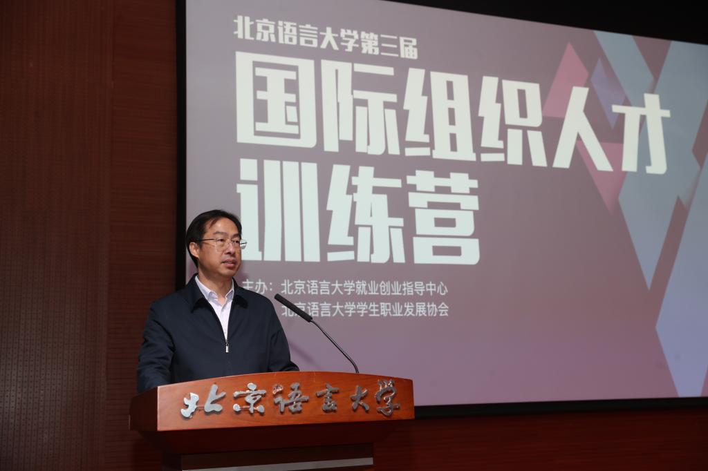 黄益方副校长在致辞中指出,培养国际组织和全球治理人才符合青年学生和学校的发展需要,更符合国家发展需要。在高校毕业生就业形势愈发严峻的今天,前往国际组织实习任职是青年学生拓宽就业领域、提高就业质量的重要发展方向之一。本届训练营结合前两届营员的意见反馈,在课程设置方面不断改进和完善,以期能够提供更加具有针对性、更能调动学生参与积极性的课程。他希望同学们能够认真学习、积极实践、全面发展,兼备政治素质、人文素养、中国情怀和国际视野,成为“外语+专业”、“知识+能力”、“中国通+全球通”的复合型国际化人才,为维护中国的利益和为世界和平与发展做出应有贡献。