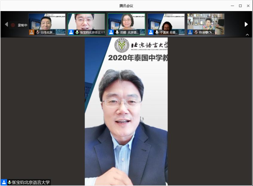 11月27日,泰国中学教师中文国际教育线上研修班结业,北京语言大学副校长张宝钧教授致辞。本次研修班项目由北京语言大学泰国代表处主办、曼谷学院、AFS INTERNATIONAL PROGRAMS THAILAND 协办。