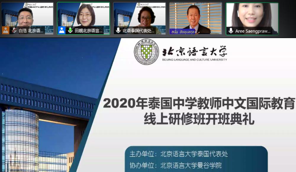 11月23日上午举行了开班典礼,北京语言大学泰国代表处于美英主任、曼谷学院董事会主席洪百川先生、汉语国际教育学部副主任白浩博士分别致辞,来自换汶纳普密中学的普安丽女士代表学员发言。在随后一周的时间里,学员们参加了由汉语国际教育学部的王安红、赵菁、李小丽、张辉及陈闻5位一线教学名师分别开设的语音、汉字、词汇、语法、教学法以及教育技术等中文教学方面的培训课程,在线课堂上学员们向专家们踊跃提问、深入交流。