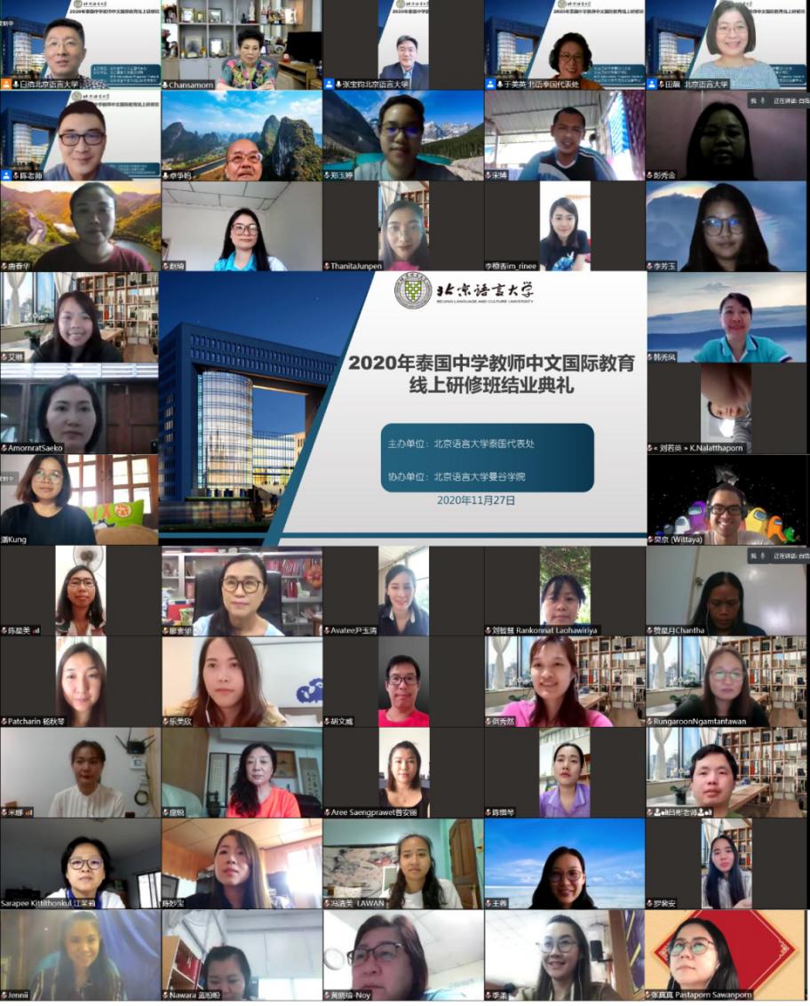 本次“2020年泰国中学教师中文国际教育线上研修班”邀请到了我校中文国际教育方面的一线教学名师,有来自泰国全国各地50个府的162名学员参加研修,针对泰国教师在教学工作中遇到的问题、难点及教学方法开设了5场培训课程。