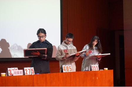 首轮比赛为“此处相逢,初试锋芒”,12位选手同时进行答题,并在30秒时间内将答案写在展示板上,根据题目难易程度获得不同得分。同学们认真听取比赛规则,仔细思考题目要求,时而低头沉思,时而奋笔疾书,集中精神应对每一道题目。