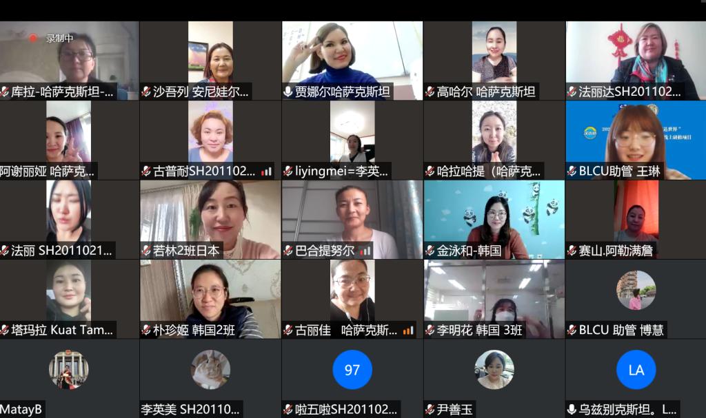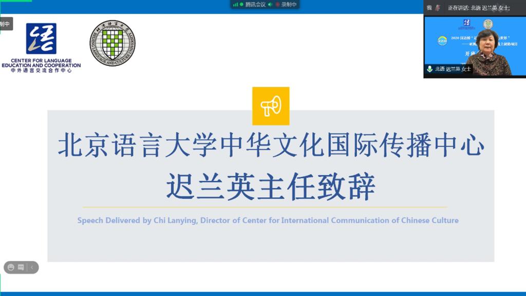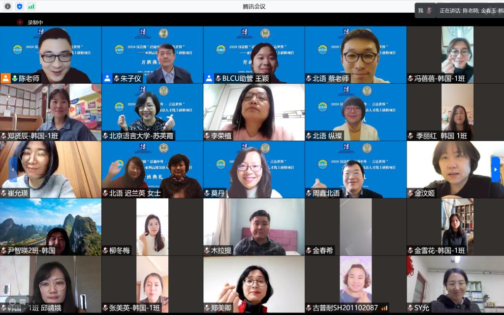 11月30日上午,由教育部中外语言合作交流中心主办,北京语言大学汉语国际教育学部汉语速成学院和中华文化国际传播中心联合承办的2020 汉语桥“语通中外·言达世界”——亚洲高级汉语人才线上研修班举行了开班典礼。北语中华文化国际传播中心主任迟兰英、汉语速成学院院长苏英霞、留学生招生处处长周鑫、项目组教师,以及来自韩国、哈萨克斯坦、乌兹别克斯坦和日本的100名学员相聚云端,在线上参加了开班典礼。