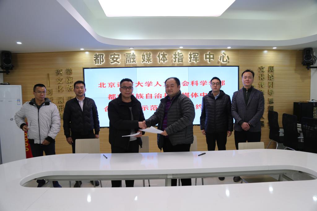 座谈会期间,学校人文社会科学学部与都安县融媒体中心签订了党支部合作共建协议。