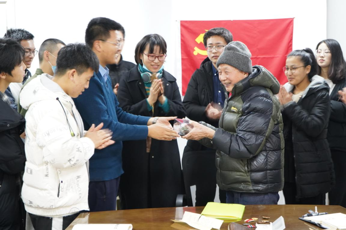 活动最后,刘国桐老师向同学们展示了自己珍藏多年的解放勋章、抗美援朝作战纪念章等荣誉勋章。这些不仅是历史的见证,是军人的荣誉,更是党和国家对革命前辈一生无私奉献的肯定。武装部钦浩老师代表所有参加活动的学生向刘老师赠送了手工制作的坦克模型作为礼物。活动结束后,在场同学们胸中激荡的热血久久不能平复,更有人现场决定加入应征入伍的行列。