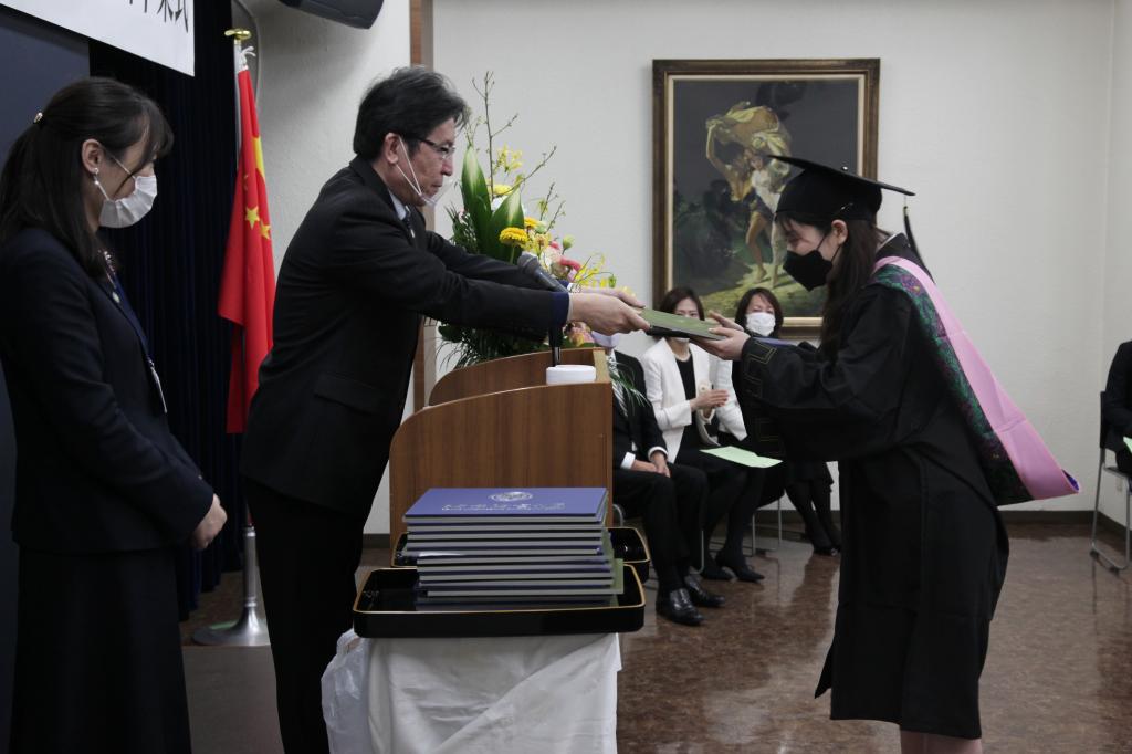 北京语言大学东京学院日前隆重举行2021年春季汉语言专业本科生毕业典礼。出席毕业典礼的有日本ISI教育集团荻野祥二郎理事长、井上由纪子理事、吴玲文理事、北语东京学院彭志平院长、东京学院全体教师、事务局及招生科职员、学生家长和来宾,东京学院毕业生及在北语本校汉语学院留学的部分学生身着学士服参加了毕业典礼。