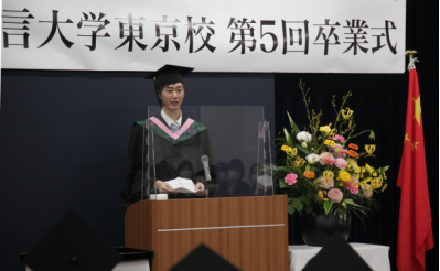 毕业生代表在毕业感言中回忆了在东京学院四年的学习历程,衷心感谢学校和全校教职员的辛勤培养和教育。