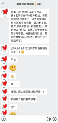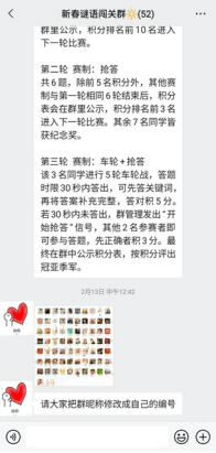 大年初二下午,60余位留校同学在线上活动微信群中展开了比拼。经过层层脑力与手速的较量,几位宝贝鱼才子难分伯仲,最终一并获得冠亚军。此次线上活动,我们看到了大家的热情参与,反响良好。很幸运能够在这个冬季,让留校的宝贝鱼们感受到北语大家庭不一样的温暖!