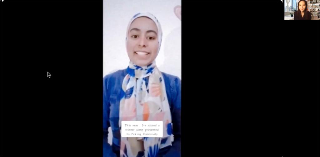 营员代表杜向松同学也在结业仪式上分享了他在这一周中参加线上主题活动的感受和体会。他认为这是一次非常有趣且有效率的线上活动经历。在参与本次冬令营之前,学习汉语一年多的他,对于中国文化的了解其实并不深,“与中国朋友谈论到中国文化或历史知识,总是一问三不知”。七天的“非遗”主题学习,他掌握了许多中国非物质文化遗产的相关知识,对中国的传统节日和习俗也有了更多了解。在参与线上冬令营活动期间,尽管同学们也在准备埃及学校的期末考试,但还是十分珍惜这次宝贵的学习机会,坚持按时上课、积极参与项目活动。杜向松同学认为,学习一门语言,了解对方的文化和历史非常重要。本次冬令营恰好提供了这样一个机会,语言课程和文化活动都为学员们展示了中国语言和文化的巨大魅力和深刻内涵。在疫情下,北京语言大学孔子学院的各位老师以线上的特殊方式为他和其他学生呈现了精彩绝伦的系列活动,他非常感激,并表示自己今后将更加努力地学习汉语和中国文化,早日来到中国深入学习。