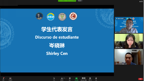 岑晓琳同学是本次开营仪式中的学生代表。她在发言中提到,她今年十八岁了,是委内瑞拉玻利瓦尔大学孔子学院的学生。她表示,“中国乡村行”文化夏令营活动让她学习到了很多中国文化和汉语知识。她非常珍惜这一次“云乘高铁,畅游中国”的夏令营课程,并充满了期待。她希望和能参加本次夏令营的同学们彼此学习,互相鼓励,一起加油,共同进步!