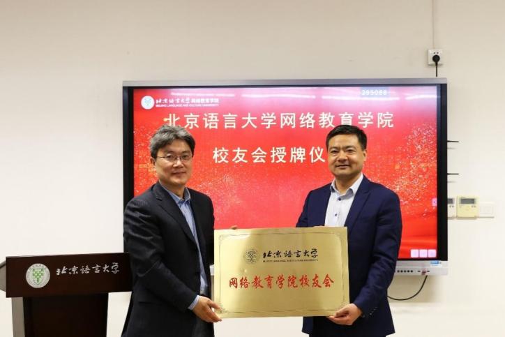 张宝钧副校长与网院校友会朱卫红副会长共同揭牌,与到场校友们一起见证北京语言大学网络教育学院校友会的成立。