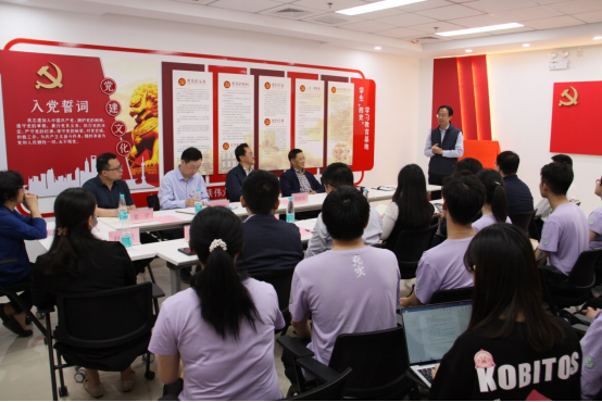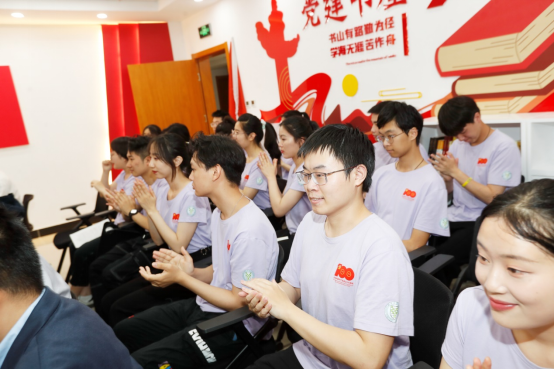 武装部军事教研室钦浩老师作为青年教职工代表分享了党史学习心得。他结合自己的学习工作,鼓励同学们和前人对话,去历史中寻找答案,在生活中善于发现、善于体悟,汲取营养和力量,把党史学习作为大学生活的必修课,成为担当民族复兴大任的时代新人的必修课。