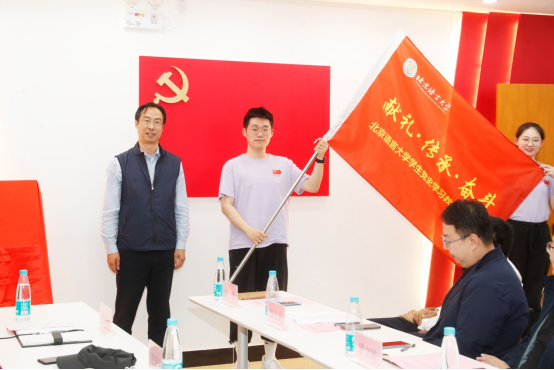 黄益方副校长向学生代表授“‘献礼•传承•奋斗’学生党史学习教育实践团”旗,并分享了自己学习党史的体会。他强调“人无精神则不立,国无精神则不强”,党史是一部革命精神的发展史,党是在曲折中探索发展的,党史学习的成效最终要体现在实际工作中。希望同学们坚定远大理想信念,积极面对困难挫折,在实践中锤炼意志品质、增长知识才干,成为品德高尚、可堪大任、全面发展的时代新人。