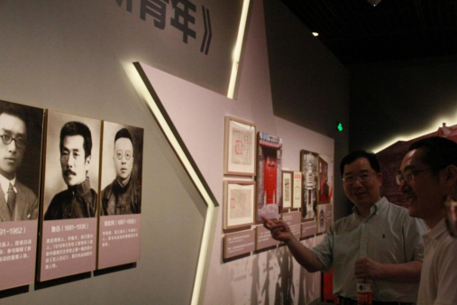 从《共产党宣言》最早的全译本,到全国一大会址嘉兴南湖纪念红船模型;从八七会议的会议记录,到开国大典上使用的礼炮……这些文物和史料还原了重大历史事件,全景展示了中国共产党从建党到建立新中国的革命历程。汉语国际教育研究院师生在馆内怀着虔诚而激动的心情,沿着文物展品和影像记录的指引,从《新青年》的创办走向新中国的成立,不断驻足流连,仿佛置身于那段激情昂扬的光辉岁月。老师们神采飞扬地述说着当年革命先辈的光辉事迹,对他们英勇无畏的精神连连称叹。红色文物静静躺在那里,细心的学生将事迹和感想认真记录,我们也看到了年迈的老者颤巍巍地俯下身来,将他们细细观摩。