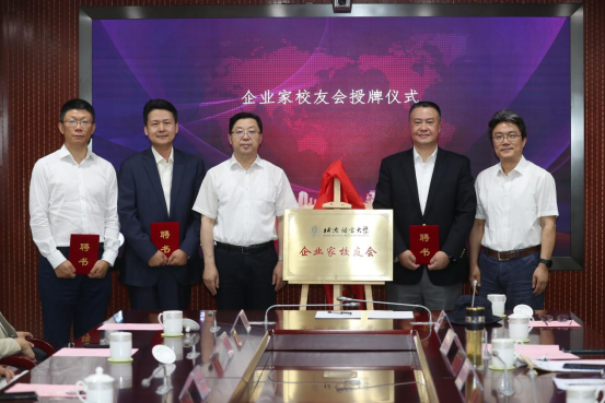 大会表决并任命了企业家校友会的领导班子:78级英语专业黄小治校友担任企业家校友会会长;91级对外汉语专业钱军校友担任企业家校友会秘书长;97级英语专业贾旭校友担任企业家校友会副秘书长。刘利校长与黄小治会长共同为企业家校友会揭牌,张宝钧副校长分别为班子成员颁发聘书,领导嘉宾与到场校友一起见证企业家校友会的正式成立。