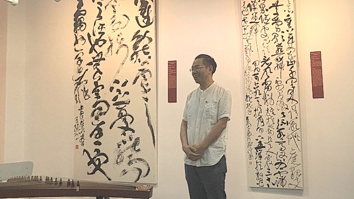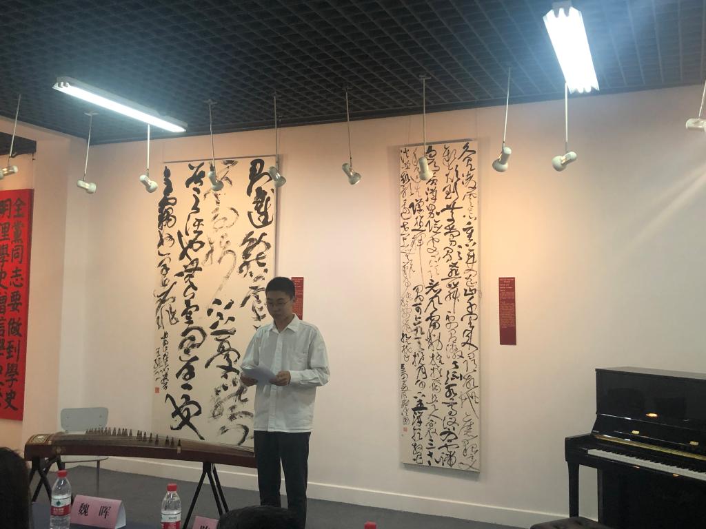 学校党委副书记魏晖发表了热情洋溢的致辞,对这次草书展的创意形式给予高度肯定。他说,今年全党都在进行党史学习教育,艺术学院通过各种艺术形式学习党的光辉历史和伟大精神,取得了不错的学习效果。学史是为了“明理、增信、崇德、力行”,本次草书展用书法展示习总书记在讲话中的用典,有助于我们学习领会习近平新时代中国特色社会主义思想,坚定理想信念,同时也是对中国优秀传统文化的一次学习。他勉励同学们既要学习继承古代知识分子的精神和风骨,也要学习近现代艺术家的新的时代风貌。希望同学们学史力行,不但要增加党史知识,更要增强本领,更好地为国家和社会服务。魏晖副书记还指出,艺术学院还担负着为全校进行美育教育和艺术教育的责任,希望今后可以为全校师生呈现更多精彩的艺术盛宴。