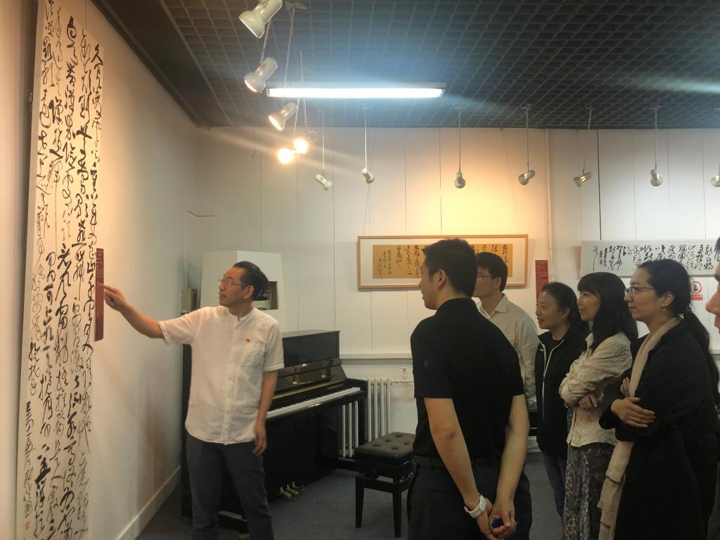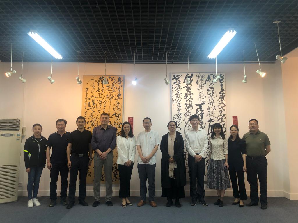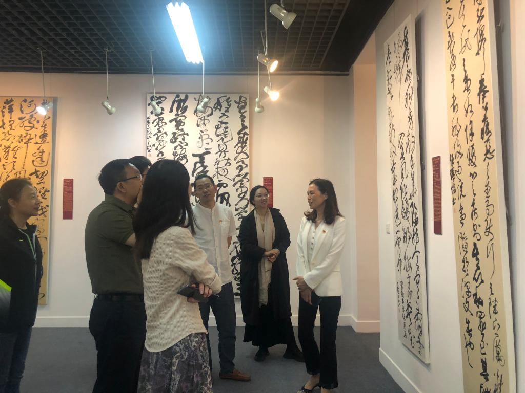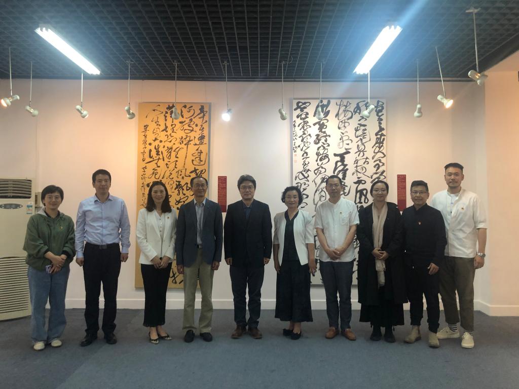 开幕式结束后,与会领导嘉宾认真欣赏展出的草书作品,并和艺术学院师生合影留念。