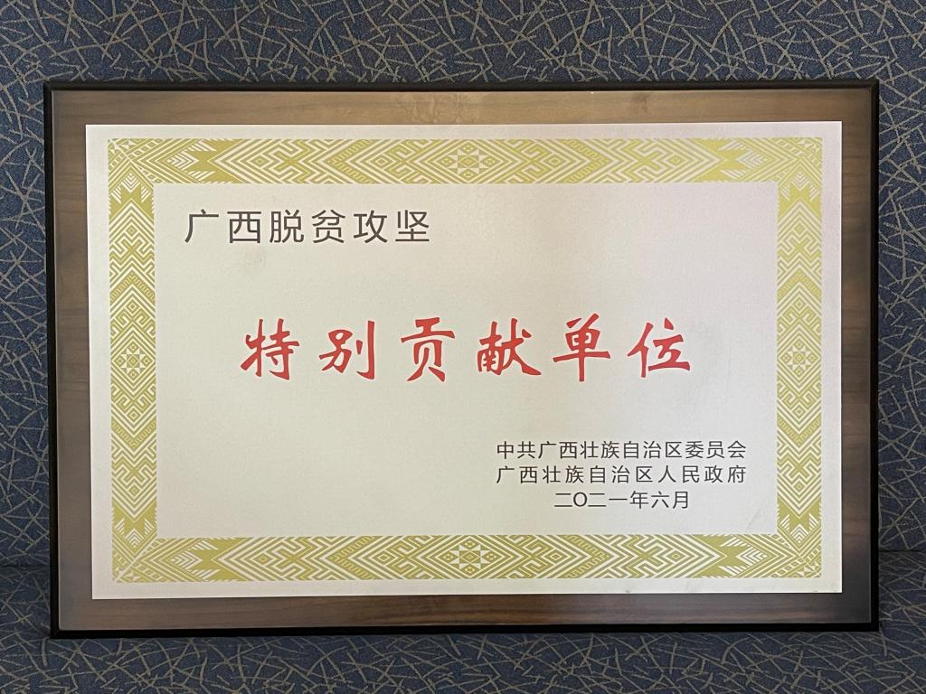 自治区主席蓝天立对我校定点帮扶都安县所做的工作表示感谢,并代表自治区授予我校“广西脱贫攻坚特别贡献单位”称号。