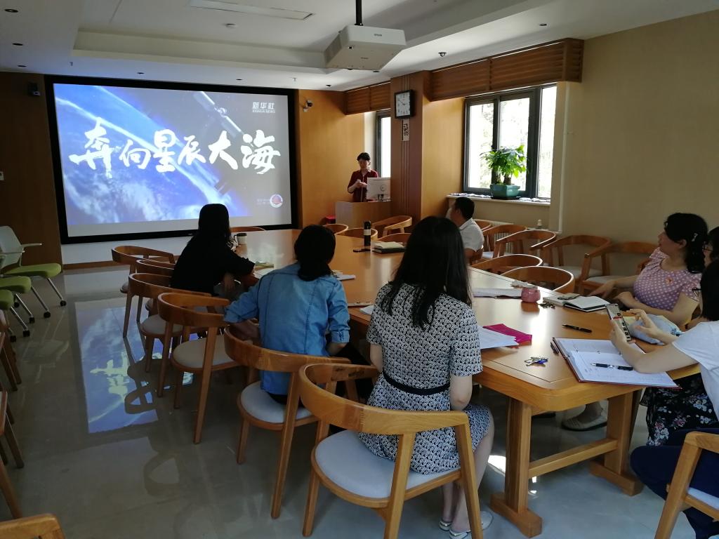 接着,在4名党员的领读下,全体党员集中学习了《论中国共产党》一书中的《讲好中国共产党的故事》与《知史爱党,知史爱国》两个重要篇章。最后,根据我校国际汉语教育的特色以及17日神州十二号成功发射的时事热点,选取了《丝路上的我们:孔子的洋徒弟》与《奔向星辰大海》两个视频短片学习。前者讲述了从美国来的古汉语学生笨笨在中国学习传统文化的切身感受;后者记录了真实的航天员苦与乐,让我们了解了这些航天英雄背后所付出的艰辛与努力。