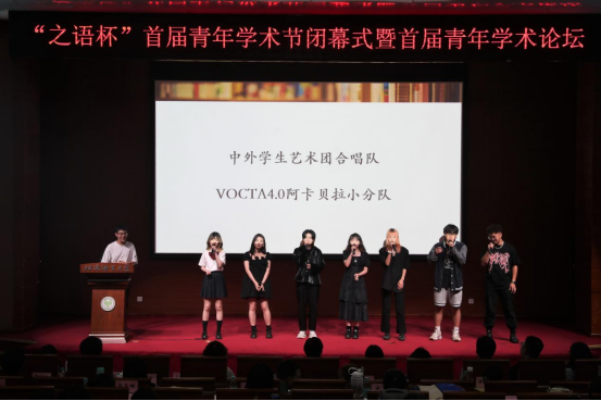 随后,由中外学生艺术团合唱队VOCTA4.0阿卡贝拉小分队为大家带来了惊艳的中场表演,赢得观众们一片掌声。